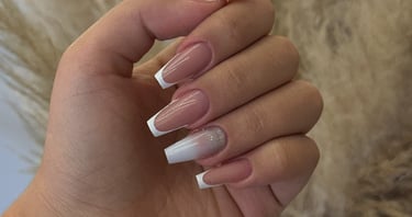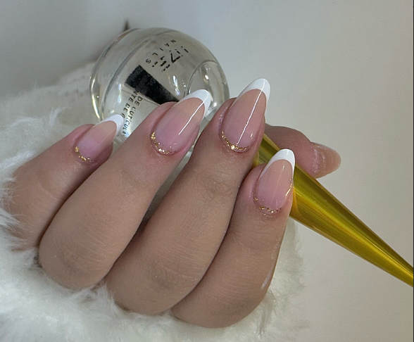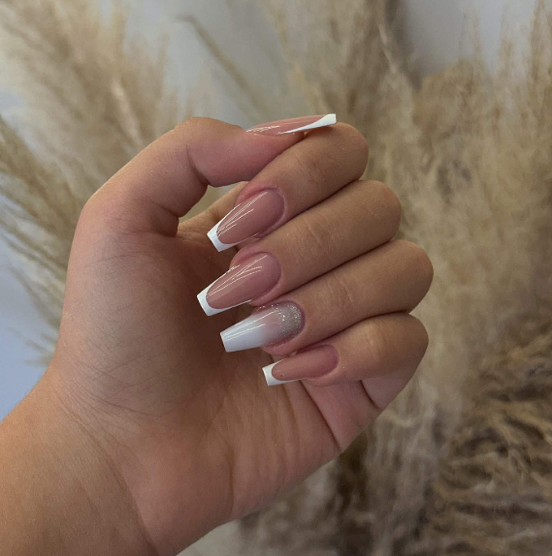 O formato oval cria um visual harmonioso e sofisticado, com curvas suaves que alongam os dedos e transmitem feminilidade. É um estilo clássico, refinado e perfeito para francesinhas modernas com detalhes luxuosos.